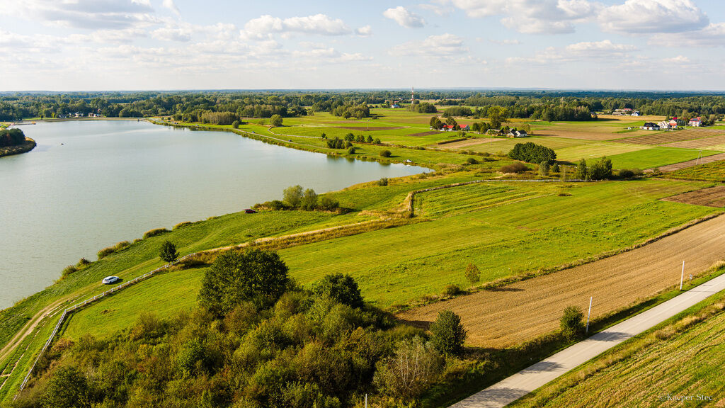 pobliżu znajduje się jezioro, lasy i rozległe pola, idealne do